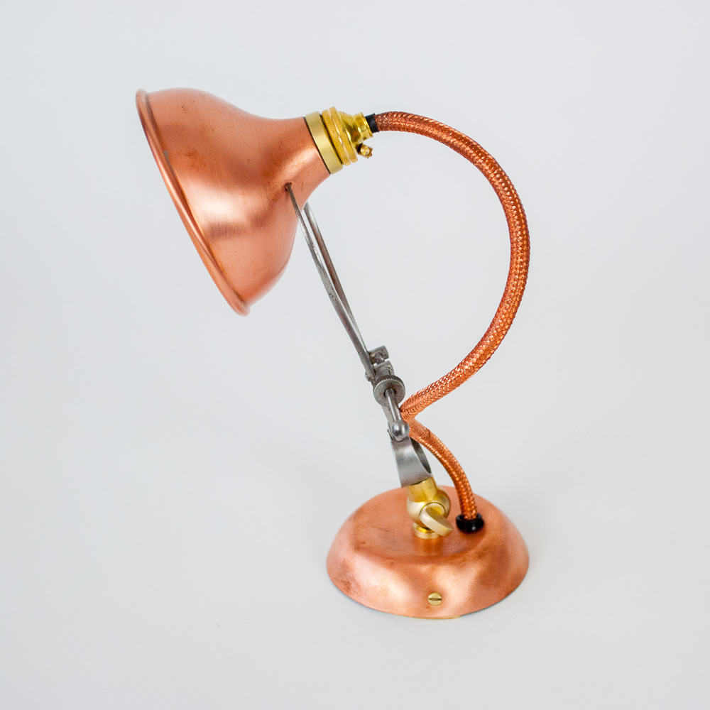 A beautifully machined engineers block and scribe, caped with a copper spinning and a 12v G4 LED light source.