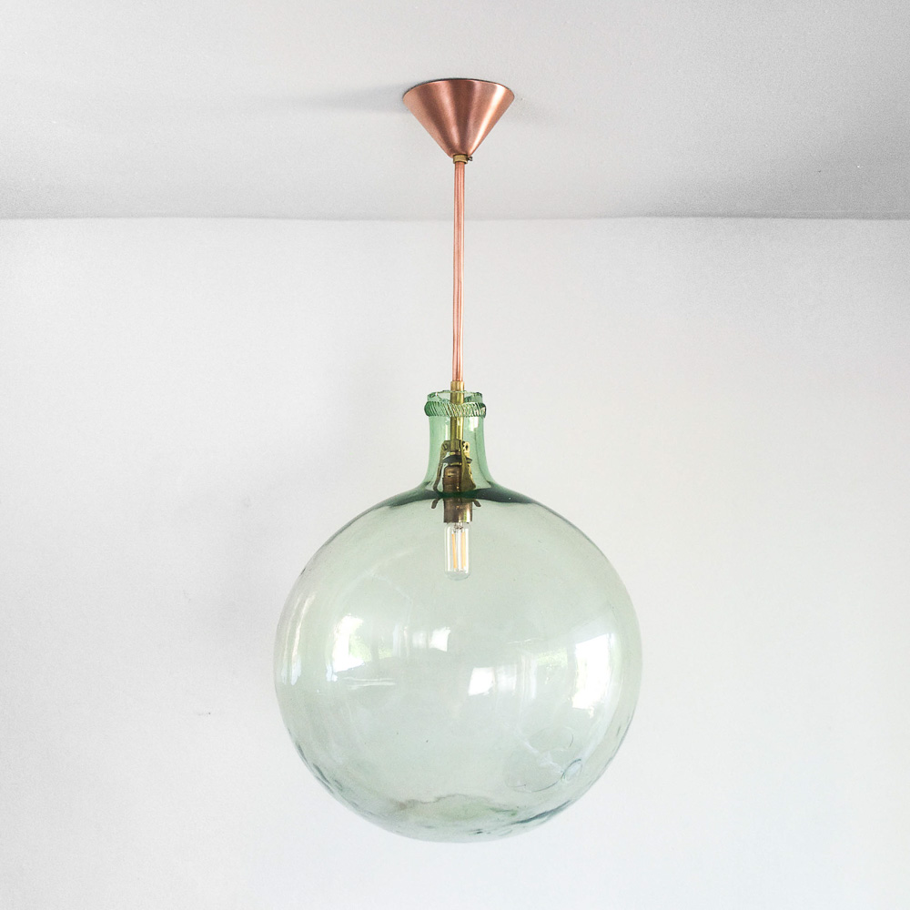 25L of air contained in a hand blown glass bubble, discovered in the depths of France suspended from a copper and brass hanging mechanism. The wine is all gone though.