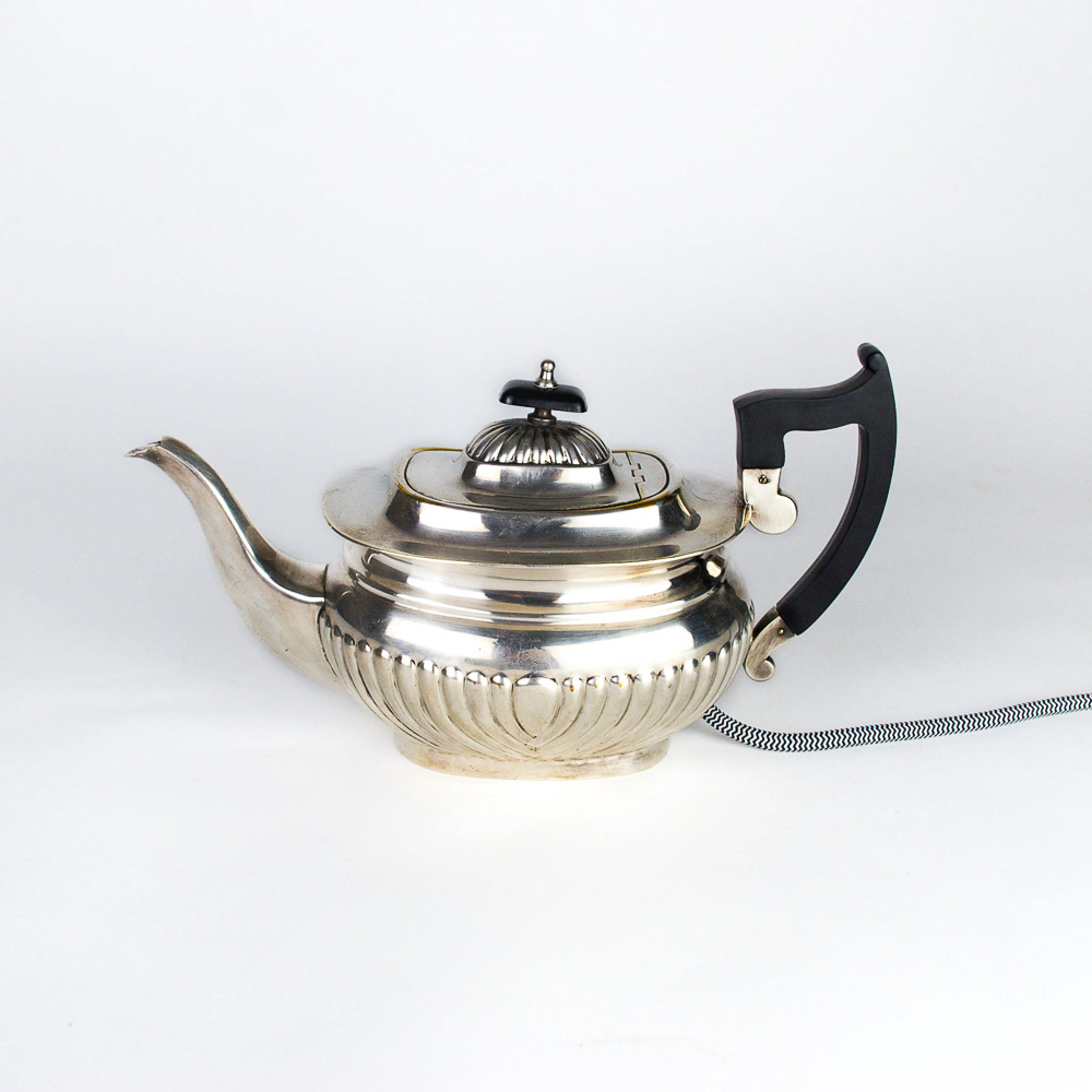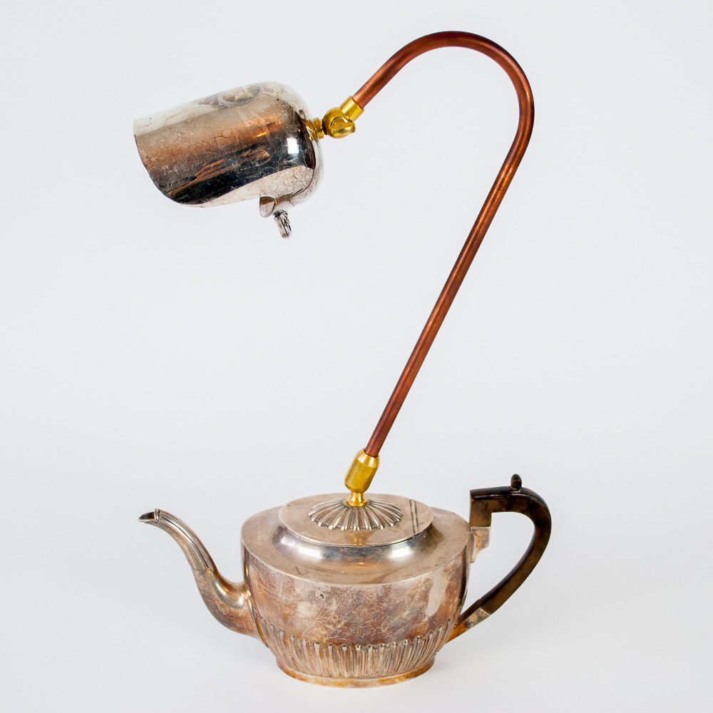 Abandoned teapot, copper stem and a waylaid sugar scoop.