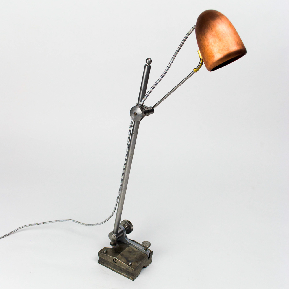 A beautifully machined engineers block and scribe, caped with a copper spinning and a 12v G4 LED light source.